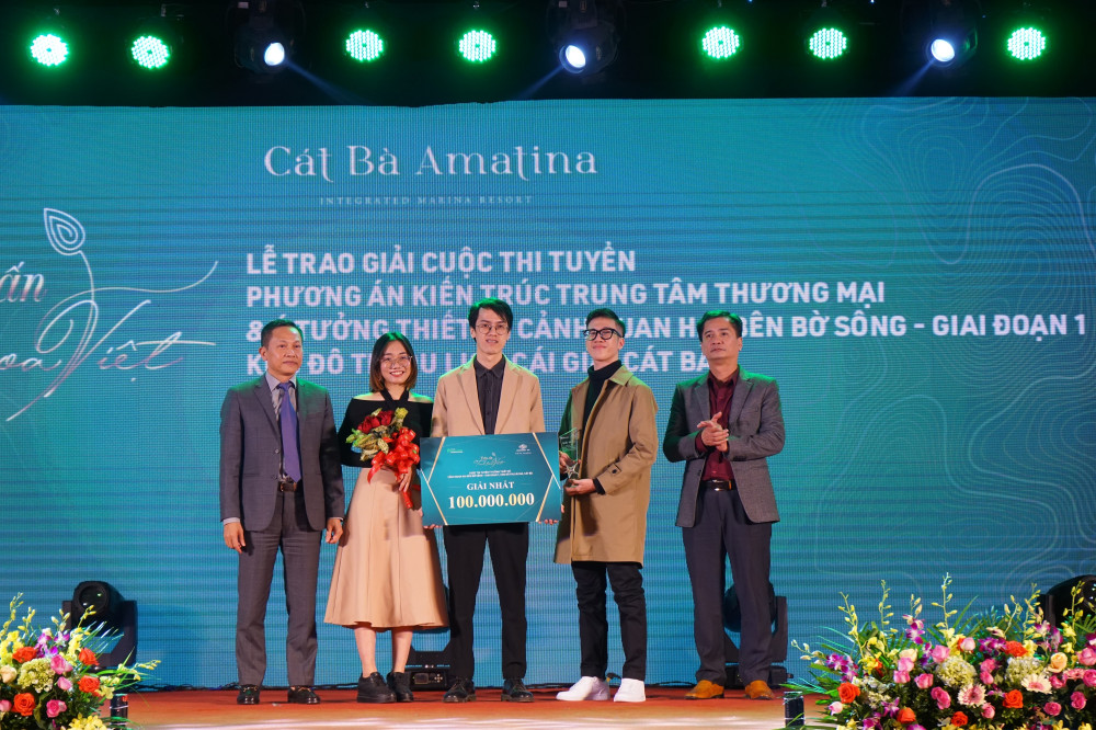 Đối với Cuộc thi tuyển Ý tưởng thiết kế cảnh quan hai bên bờ sông Giai đoạn 1 – Dự án Cát Bà Amatina được tổ chức dành riêng cho các sinh viên ngành Kiến trúc – Quy hoạch. Ban Tổ chức đã lựa chọn Phương án dự thi của nhóm sinh viên đến từ trường Đại học Xây dựng và trao giải Nhất với ý tưởng thiết kế mang lại một môi trường sống xanh cho dân cư đô thị và trải nghiệm ấn tượng cho du khách khi đến nghỉ dưỡng tại khu đô thị; cùng với 02 phương án giải Nhì và 03 phương án giải Ba.