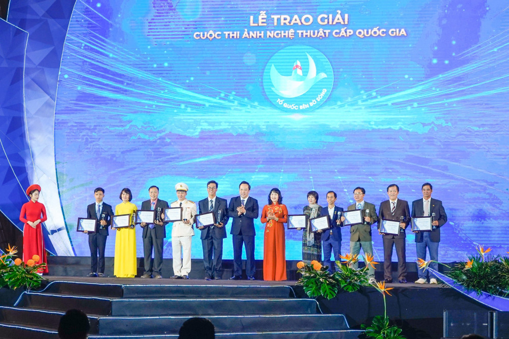 Đồng chí Tạ Quang Đông, Thứ trưởng Bộ Văn hóa, Thể thao và Du lịch và đồng chí Trần Thị Thu Đông, Phó Chủ tịch Liên hiệp các hội văn học, nghệ thuật Việt Nam, Chủ tịch Hội Nghệ sĩ Nhiếp ảnh Việt Nam trao tặng giải Khuyến khích.