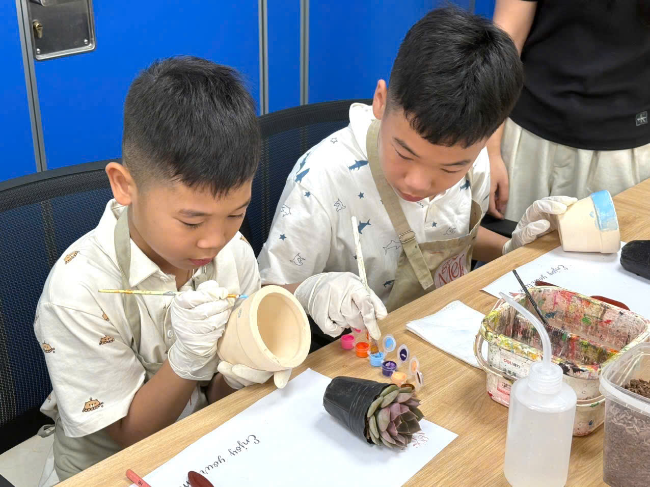 Không khí lớp học diễn ra sôi nổi, ấm áp và tràn đầy cảm hứng. Các em nhỏ tỏ ra đặc biệt hào hứng khi vừa được tự tay vẽ tranh, vừa được trải nghiệm hoạt động trồng cây, qua đó hình thành những thói quen tích cực trong việc gìn giữ môi trường sống.