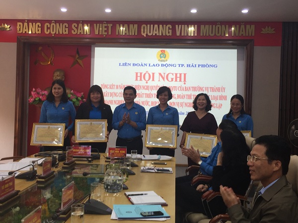 Theo đó, trong 10 năm các cấp Công đoàn thành phố đã thành lập mới được 1.225 Công đoàn cơ sở (CĐCS), trong đó có 1.146 CĐCS được thành lập trong các loại hình kinh tế ngoài nhà nước, đạt 141% KH; thành lập được 225/330 Chi bộ Đảng cơ sở trong các loại hình kinh tế ngoài nhà nước; kết nạp mới 213.724/130.000 đoàn viên Công đoàn, đạt 164% KH; kết nạp được 18.124 đoàn viên vào Đảng CS Việt Nam…