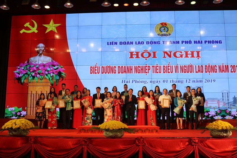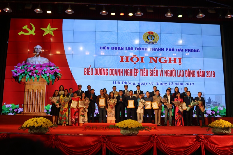 Sáng 1-12, tại Trung tâm Hội nghị & Nhà khách thành phố, LĐLĐ TP tổ chức hội nghị biểu dương “Doanh nghiệp tiêu biểu vì người lao động” năm 2019. Đến dự có các đồng chí: Trần Văn Thuật – Phó Chủ tịch Tổng LĐLĐ Việt Nam, Lê Khắc Nam – Phó Chủ tịch UBND TP và lãnh đạo các Sở, ban, ngành thành phố; các đồng chí Chủ tịch LĐLĐ các tỉnh, thành: Hà Nội, Quảng Ninh, Thái Bình, Hải Dương; lãnh đạo Công đoàn ngành TW, Công đoàn Tổng Công ty trực thuộc Tổng liên đoàn cùng lãnh đạo của 42 doanh nghiệp tiêu biểu được vinh danh tại hội nghị.
