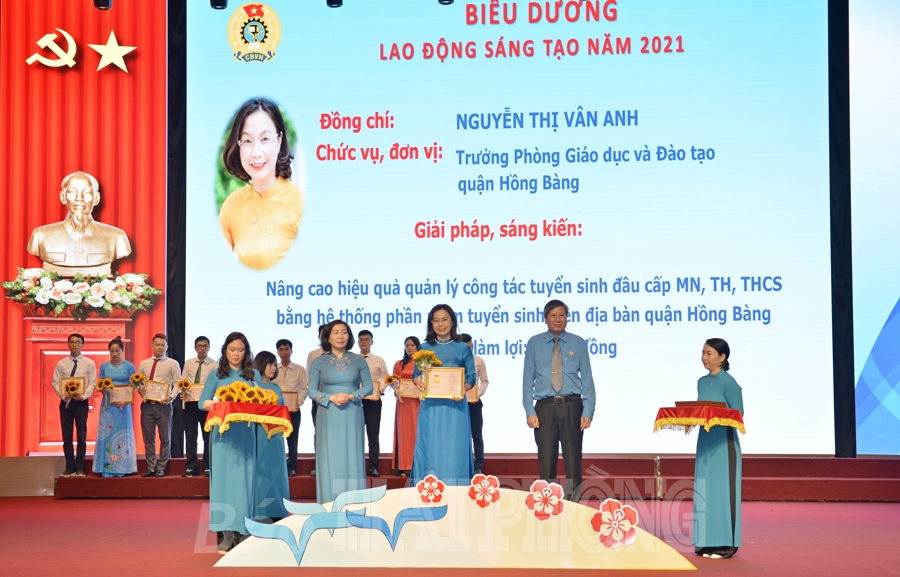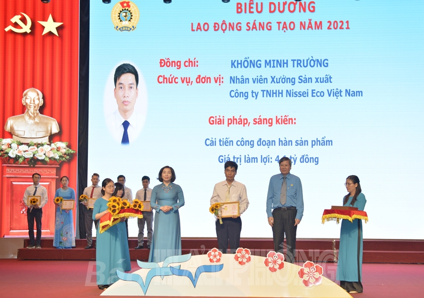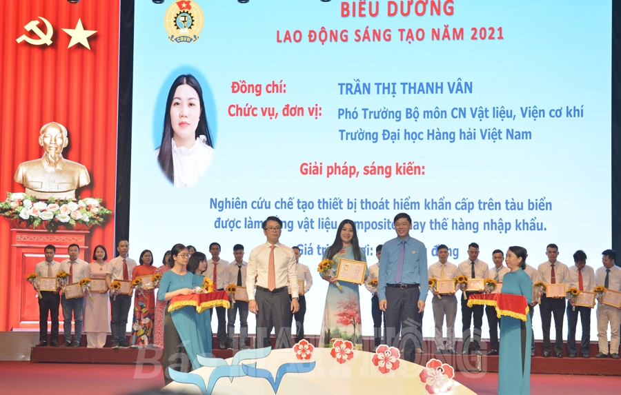 Nhân dịp này, LĐLĐ thành phố biểu dương 100 đoàn viên tiêu biểu gồm 50 đoàn viên được Tổng LĐLĐ Việt Nam tặng Bằng Lao động sáng tạo; 50 đoàn viên được Chủ tịch UBND thành phố tặng Bằng khen Lao động giỏi năm 2021./.