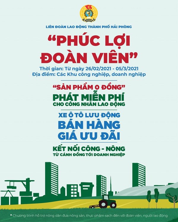 Từ ngày 26/2-5/3/2021, 28 chương trình đưa nông sản, thực phẩm sạch của bà con nông dân trên địa bàn thành phố dành tặng miễn phí cho hàng chục nghìn đoàn viên và người lao động tại các doanh nghiệp sẽ được các cấp Công đoàn thành phố đồng loạt triển khai thực hiện.