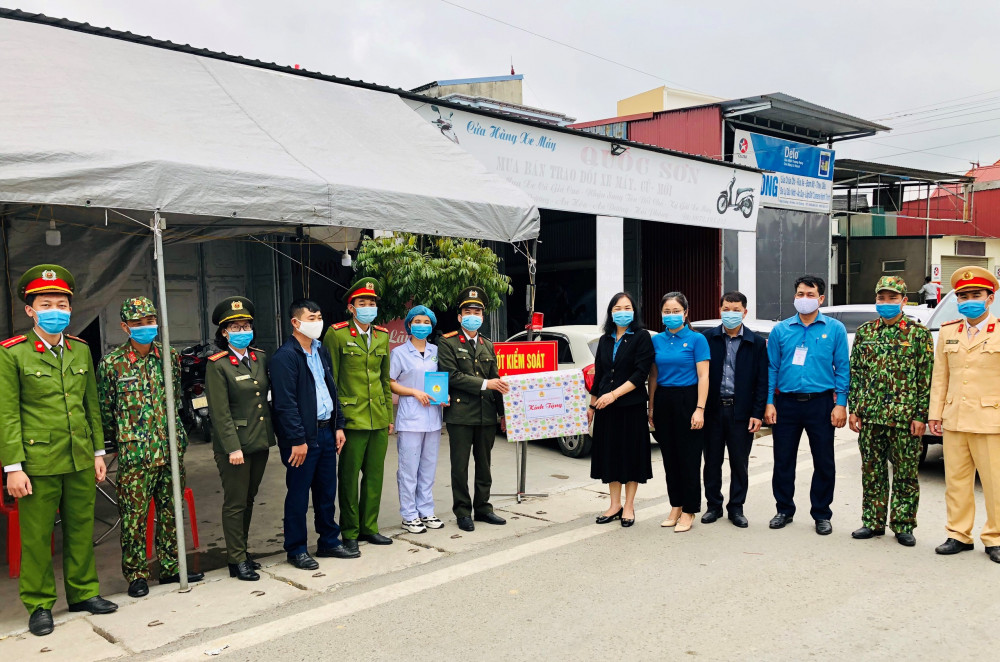 Tới thăm các điểm chốt và các bệnh viện, các đồng chí Thường trực Liên đoàn Lao động thành phố chúc các cán bộ, chiến sĩ, nhân viên y tế sức khỏe, hạnh phúc và thành công. Mong các đồng chí luôn nêu cao tinh thần trách nhiệm, hoàn thành xuất sắc nhiệm vụ kiểm soát không để dịch bệnh COVID-19 xâm nhập vào thành phố và lây lan trong cộng đồng. Tại đây, lãnh đạo Liên đoàn Lao động thành phố trao tặng quà trị giá 7 triệu đồng (gồm 5 triệu đồng tiền mặt và 2 triệu đồng hiện vật) cho mỗi điểm chốt, bệnh viện.