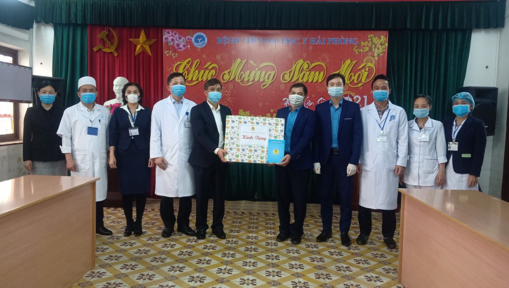 Trong các ngày 25-26/2, các đoàn công tác của Liên đoàn Lao động thành phố đã tới thăm, tặng quà lực lượng thực hiện nhiệm vụ tại 9 chốt kiểm soát dịch bệnh COVID-19 của thành phố, Bệnh viện Hữu nghị Việt Tiệp, Bệnh viện Phổi Hải Phòng và Bệnh viện Đại học Y Dược Hải Phòng, chúc mừng các đơn vị nhân ngày Thầy thuốc Việt Nam 27/2.