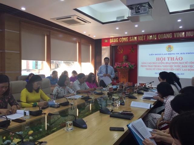 Sáng 19-10, LĐLĐ TP tổ chức hội thảo nâng cao chất lượng hoạt động Ban Nữ công và tổ chức phong trào thi đua “Giỏi việc nước đảm việc nhà trong nữ CNVCL”. Đến dự có đồng chí Tống Văn Băng – Chủ tịch LĐLĐ TP.