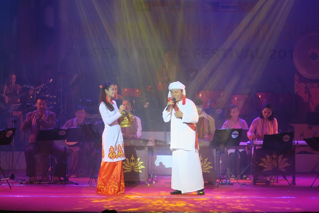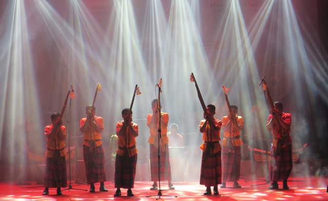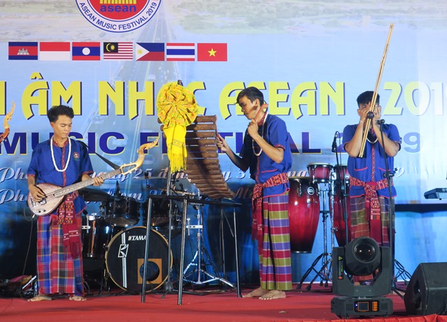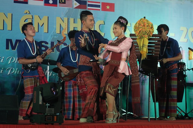 Các nghệ sĩ Đoàn Nghệ thuật Quốc gia Lào biểu diễn tiết mục “Kha – en” – thể hiện tinh thần đoàn kết của dân tộc Lào với các quốc gia ASEAN, đây là bản nhạc truyền thống được UNESCO công nhận là di sản văn hóa thế giới.