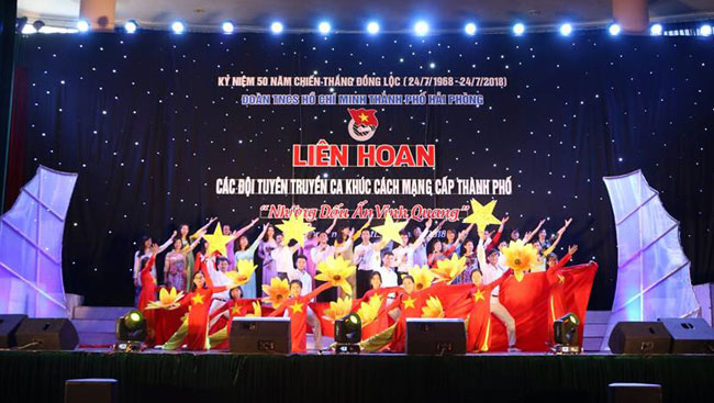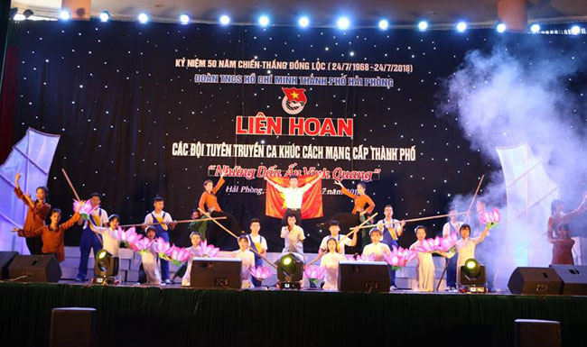 Thiết thực tổ chức các hoạt động kỷ niệm 50 năm Chiến thắng Đồng Lộc (24/7/1968 – 24/7/2018) và kỷ niệm 71 năm Ngày Thương binh – Liệt sĩ (27/7/1947 – 27/7/2018), sáng 24/7, tại Cung Văn hóa Thể thao thanh niên thành phố, Thành đoàn Hải Phòng tổ chức Liên hoan các đội tuyên truyền ca khúc cách mạng cấp thành phố năm 2018 với chủ đề “Những dấu ấn vinh quang”.