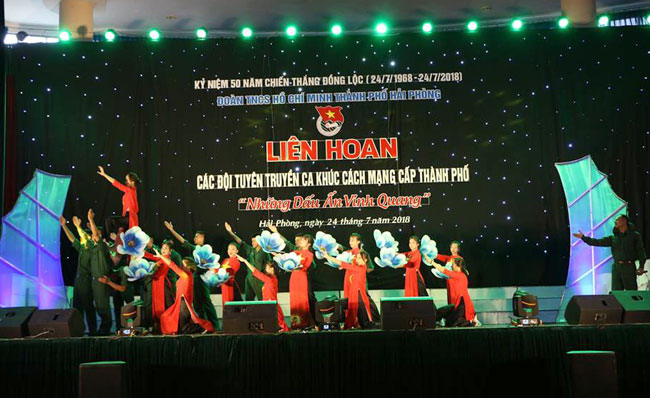 Thiết thực tổ chức các hoạt động kỷ niệm 50 năm Chiến thắng Đồng Lộc (24/7/1968 – 24/7/2018) và kỷ niệm 71 năm Ngày Thương binh – Liệt sĩ (27/7/1947 – 27/7/2018), sáng 24/7, tại Cung Văn hóa Thể thao thanh niên thành phố, Thành đoàn Hải Phòng tổ chức Liên hoan các đội tuyên truyền ca khúc cách mạng cấp thành phố năm 2018 với chủ đề “Những dấu ấn vinh quang”.