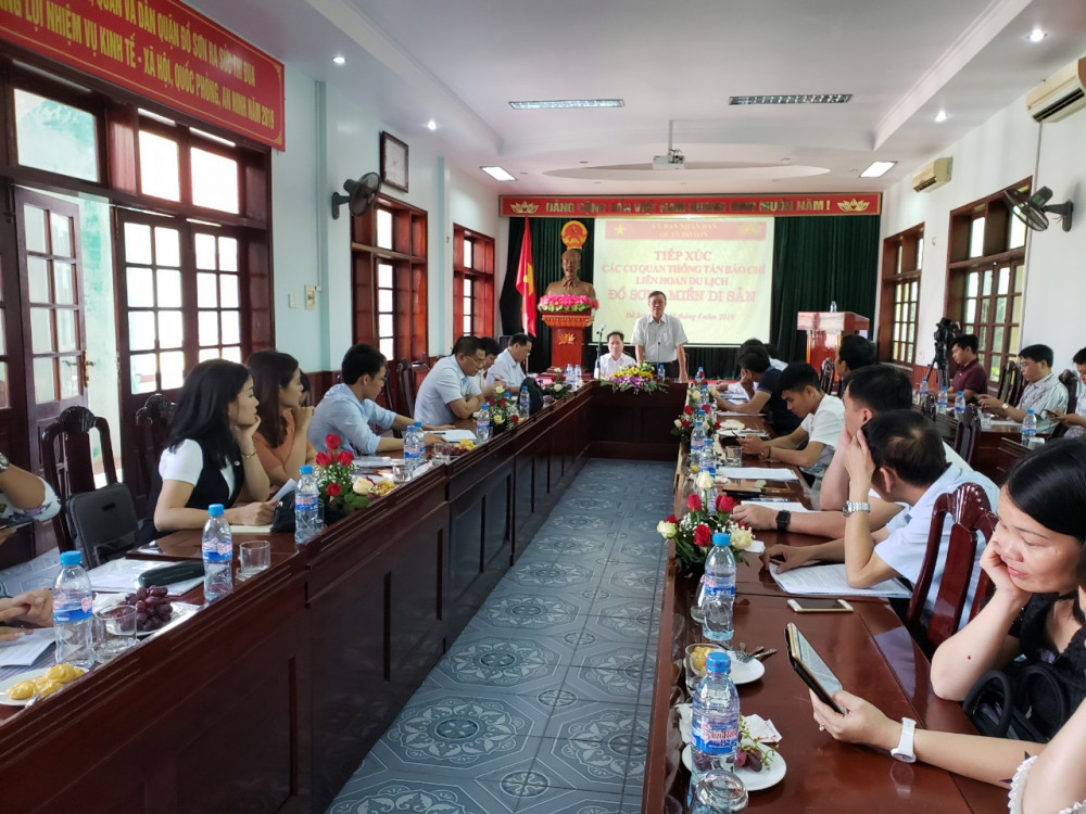 Lãnh đạo quận Đồ Sơn phát biểu tại buổi tiếp xúc báo chí trước thềm Liên hoan du lịch