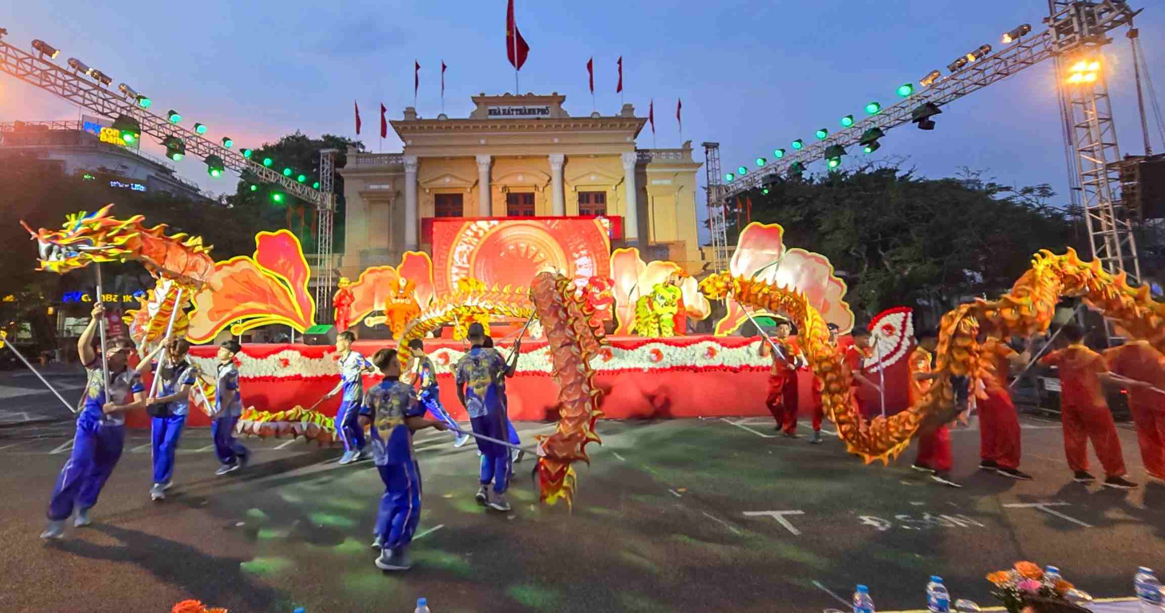 Trước đó, từ chiều 7.5, đông đảo các nghệ sĩ, diễn viên, nghệ nhân và các cháu thiếu nhi với trang phục, đạo cụ đặc trưng của đơn vị mình tham gia diễu hành qua một số tuyến phố dải trung tâm thành phố.