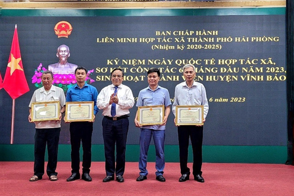 Sáng 28/6, Liên minh Hợp tác xã (HTX) thành phố tổ chức Kỷ niệm Ngày Hợp tác xã Quốc tế; sơ kết công tác 6 tháng đầu năm 2023, triển khai nhiệm vụ trọng tâm 6 tháng cuối năm 2023 và sinh hoạt thành viên địa bàn huyện Vĩnh Bảo.
