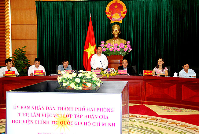Sáng 30/8, tại Trung tâm Hội nghị thành phố, Lớp tập huấn hợp tác quốc tế của Học viện Chính trị Quốc gia Hồ Chí Minh đi thực tế tại Hải Phòng do Phó Giáo sư – Tiến sĩ Hoàng Văn Nghĩa làm trưởng đoàn. Đồng chí Nguyễn Văn Thành, Ủy viên Thành ủy, Phó Chủ tịch UBND thành phố chủ trì buổi tiếp và làm việc với đoàn. Tham dự có đại diện lãnh đạo sở, ban, ngành và các đơn vị liên quan.