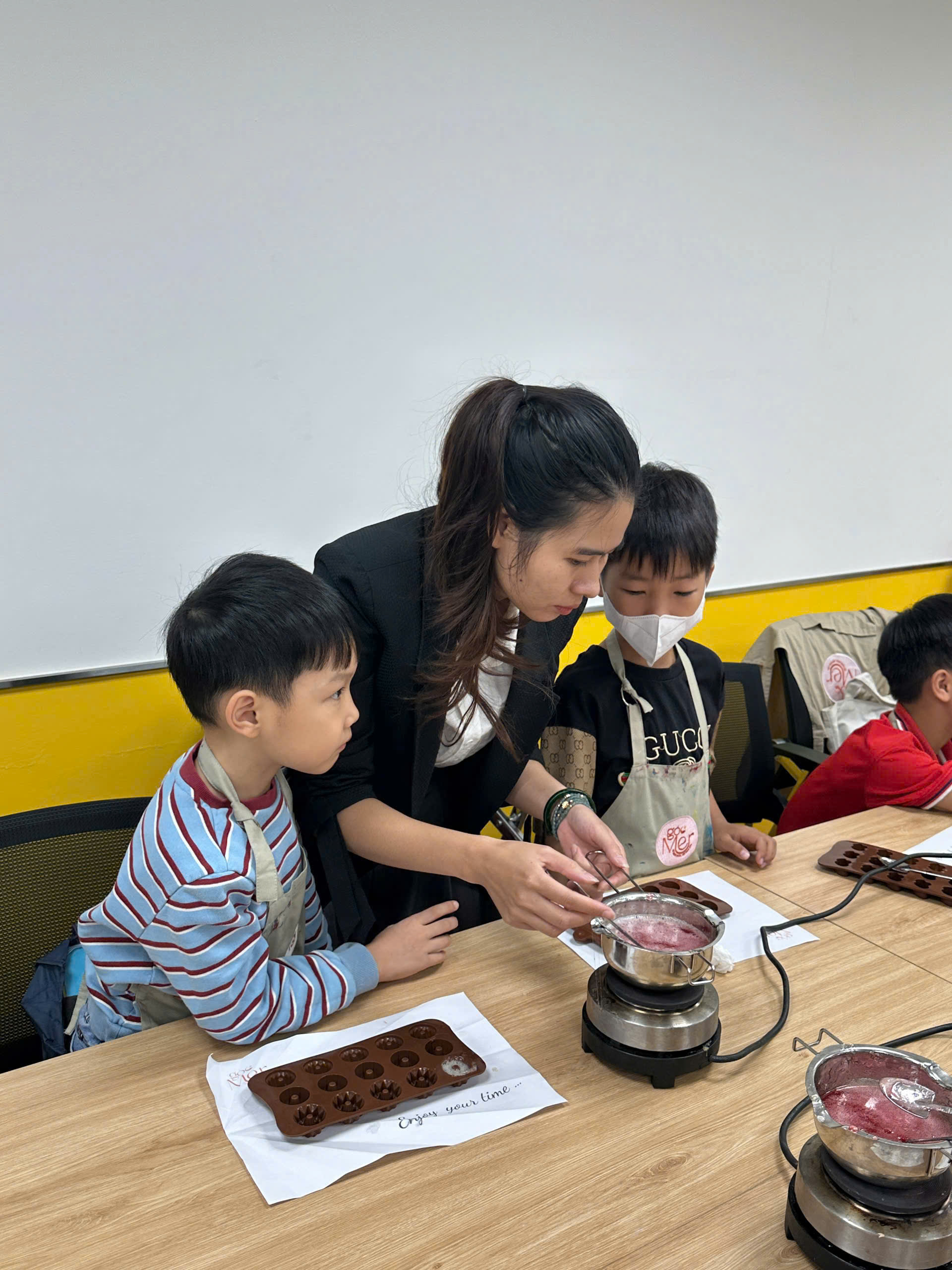 Các em được hướng dẫn cách phối màu và tạo hình những món tráng miệng yêu thích. 25 tác phẩm với vô vàn phong cách: kẹo dẻo cầu vồng, kem ốc quế khổng lồ, bánh cupcake lấp lánh… Tất cả đều thể hiện trí tưởng tượng phong phú của các em. Không khí vui vẻ, giúp các em thư giãn và tự tin thể hiện cảm xúc qua từng nét cọ.