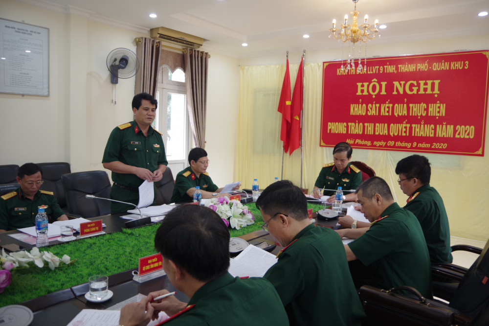 Chiều 9/9, tại Ban Chỉ huy Quân sự (CHQS) quận Kiến An (Bộ CHQS thành phố Hải Phòng), Khối thi đua lực lượng vũ trang (LLVT) 9 tỉnh, thành phố Quân khu 3 do Bộ CHQS tỉnh Quảng Ninh làm Khối trưởng đã tiến hành khảo sát kết quả thực hiện phong trào thi đua quyết thắng (TĐQT) năm 2020 tại Bộ CHQS thành phố Hải Phòng.