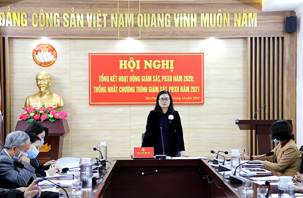 Sáng 15/12, Ban Thường trực Ủy ban Mặt trận Tổ quốc (MTTQ) Việt Nam thành phố Hải Phòng tổ chức hội nghị tổng kết hoạt động giám sát, phản biện xã hội năm 2020 và thống nhất chương trình giám sát, phản biện xã hội của Ủy ban MTTQ Việt Nam và các tổ chức chính trị-xã hội thành phố năm 2021. Đồng chí Vũ Anh Thư, Phó Chủ tịch Ủy ban MTTQ Việt Nam thành phố chủ trì Hội nghị.