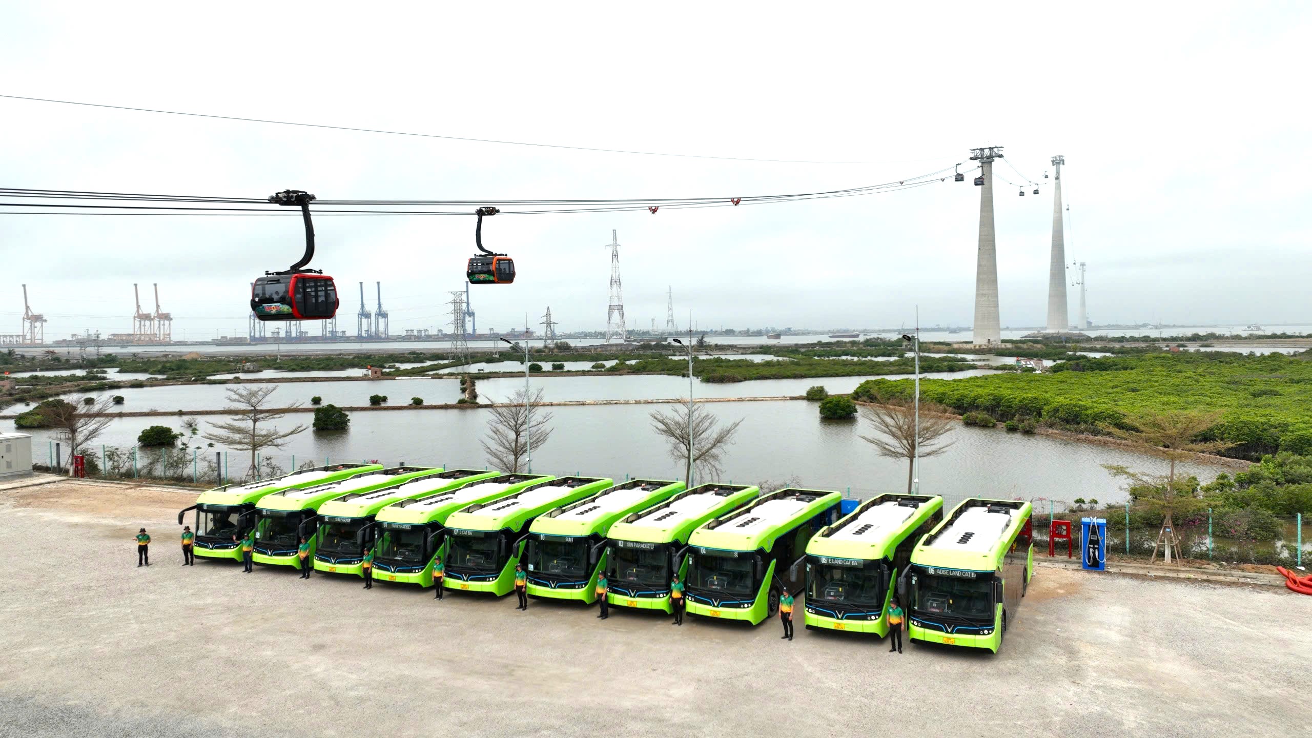 Trong giai đoạn thử nghiệm miễn phí (18/4-15/5/2025), 10 xe điện chạy tuyến ga cáp treo Phù Long – Vịnh trung tâm Xanh Island hoạt động liên tục phục vụ đưa đón du khách. Từ 16/5/2025, hệ thống mở rộng lên 20 xe mỗi loại, với tần suất 150 chuyến/ngày, đáp ứng nhu cầu mùa cao điểm. Du khách đi cáp treo có thể dễ dàng gửi phương tiện cá nhân tại bãi đậu xe nhà ga Cát Hải của Sun World Cát Bà. Giá vé cáp treo Sun World Cát Bà hiện vẫn đang được ưu đãi chỉ còn 50.000 VNĐ/ lượt khách di chuyển 1 chiều (áp dụng tới 31/12/2025).