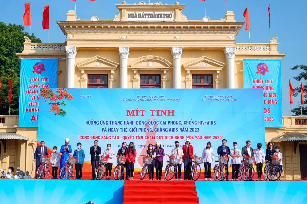 Tại chương trình, các nhà hảo tâm tặng cho trẻ em nhiễm và ảnh hưởng bởi HIV tại thành phố Hải Phòng một số xe đạp và vật dụng khác. Sinh viên Trường Đại học Y Dược Hải Phòng biểu diễn tiết mục nhảy Flashmob trên nền nhạc bài hát “Alo PrEP nghe”. Các lực lượng tuyên truyền diễu hành hưởng ứng Tháng hành động quốc gia phòng, chống HIV/AIDS năm 2023 và ngày thế giới phòng, chống AIDS 1/12.