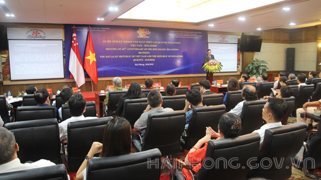Phát biểu tại Lễ mít tinh, Phó Chủ tịch UBND thành phố Nguyễn Văn Thành nhấn mạnh, trong 45 năm qua, quan hệ hợp tác giữa hai nước ngày càng phát triển mạnh mẽ và mở rộng trên tất cả các lĩnh vực chính trị, an ninh, quốc phòng, kinh tế, giáo dục – đào tạo, văn hóa, giao lưu nhân dân. Mối quan hệ đã không ngừng phát triển cả về chiều rộng lẫn chiều sâu. Tính đến hết tháng 5/2018, Singapore có 2.048 dự án đầu tư tại 48/63 tỉnh, thành phố của Việt Nam, với tổng số vốn đầu tư trị giá 43,53 tỷ USD. Singapore có 30 dự án đầu tư FDI tại Hải Phòng với tổng số vốn đầu tư trên 754 triệu USD, đứng thứ 5 trong tổng số 36 quốc gia và vùng lãnh thổ đầu tư vào thành phố. Dự án tiêu biểu, có tầm ảnh hưởng tới môi trường đầu tư của thành phố là Khu Đô thị – Công nghiệp – Dịch vụ VSIP Hải Phòng của Công ty TNHH VSIP Hải Phòng, hiện KCN đã lấp đầy trên 50%, thu hút các tập đoàn lớn đa quốc gia như Nipro Pharma, Fuji Xerox… Ngoài ra, các dự án FDI khác của Singapore cũng triển khai có hiệu quả. Bên cạnh đó, thành phố Hải Phòng thường xuyên nhận được lời mời tham dự các khóa đào tạo về quy hoạch đô thị bền vững, quản lý hành chính công… do Chính phủ Singapore tài trợ.
