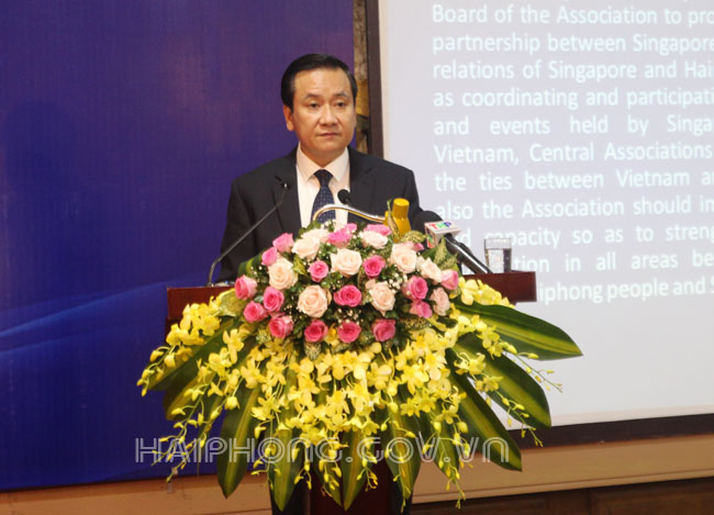 Phát biểu tại Lễ mít tinh, Phó Chủ tịch UBND thành phố Nguyễn Văn Thành nhấn mạnh, trong 45 năm qua, quan hệ hợp tác giữa hai nước ngày càng phát triển mạnh mẽ và mở rộng trên tất cả các lĩnh vực chính trị, an ninh, quốc phòng, kinh tế, giáo dục – đào tạo, văn hóa, giao lưu nhân dân. Mối quan hệ đã không ngừng phát triển cả về chiều rộng lẫn chiều sâu. Tính đến hết tháng 5/2018, Singapore có 2.048 dự án đầu tư tại 48/63 tỉnh, thành phố của Việt Nam, với tổng số vốn đầu tư trị giá 43,53 tỷ USD. Singapore có 30 dự án đầu tư FDI tại Hải Phòng với tổng số vốn đầu tư trên 754 triệu USD, đứng thứ 5 trong tổng số 36 quốc gia và vùng lãnh thổ đầu tư vào thành phố. Dự án tiêu biểu, có tầm ảnh hưởng tới môi trường đầu tư của thành phố là Khu Đô thị – Công nghiệp – Dịch vụ VSIP Hải Phòng của Công ty TNHH VSIP Hải Phòng, hiện KCN đã lấp đầy trên 50%, thu hút các tập đoàn lớn đa quốc gia như Nipro Pharma, Fuji Xerox… Ngoài ra, các dự án FDI khác của Singapore cũng triển khai có hiệu quả. Bên cạnh đó, thành phố Hải Phòng thường xuyên nhận được lời mời tham dự các khóa đào tạo về quy hoạch đô thị bền vững, quản lý hành chính công… do Chính phủ Singapore tài trợ.