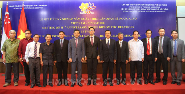 Sáng 30/8, tại Trung tâm Hội nghị thành phố, Trung ương Hội Hữu nghị Việt Nam – Singapore và Liên hiệp các tổ chức hữu nghị thành phố Hải Phòng long trọng tổ chức Lễ mít tinh kỷ niệm 45 năm ngày thiết lập quan hệ ngoại giao Việt Nam – Singapore (1/8/1973 – 1/8/2018). Tham dự Lễ mít tinh có Ngài Tan Weiming, Đại biện lâm thời Đại sứ quán nước Cộng hòa Singapore tại Việt Nam; ông Vũ Viết Ngoạn, Tổ trưởng Tổ tư vấn của Thủ tướng Chính phủ, Chủ tịch Trung ương Hội hữu nghị Việt Nam – Singapore và các Đại sứ, các đại diện Đại sứ quán các nước ASEAN tại Việt Nam. Dự buổi lễ về phía thành phố Hải Phòng có Phó Chủ tịch UBND thành phố Nguyễn Văn Thành và lãnh đạo các sở, ban, ngành, đơn vị liên quan.