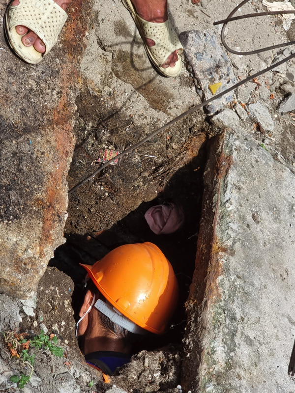 Dưới cái nóng gần 40 độ, ngoài trời hầm hập, nắng táp vào mặt rát bỏng. Một đội công nhân gồm 3 người đang nạo vét cống ở khu tập thể Đổng Quốc Bình. Anh Phạm Văn Ngọc nhà ở quận Kiến An vừa hì hụi nạo vét bùn bẩn vào chiếc thùng nhỏ, vừa nhắc người bên trên chuyển bùn vào xe chở. Nhìn anh công nhân chăm chú làm việc, thỉnh thoảng lại đưa từ dưới cống lên một chiếc thùng bùn đen hôi hám, đứng ở đằng xa cũng ngửi thấy mùi hôi thối nồng nặc. Cứ đều đặn đưa thùng bùn bẩn như thế khoảng 20 phút mãi không thấy anh Ngọc nghỉ, một chị công nhân khác nhìn xót xa quá bèn nhắc “có cần lên để thở không anh, để em thay nhé”. Anh Ngọc vẫn đang cố gắng xúc bùn để hoàn tất công việc nên đã xua tay như muốn nói rằng “ tôi cố được”! Và anh lại xoay ra xoay vào, thoắt nhô lên rồi ẩn xuống dưới lòng cống nhỏ.