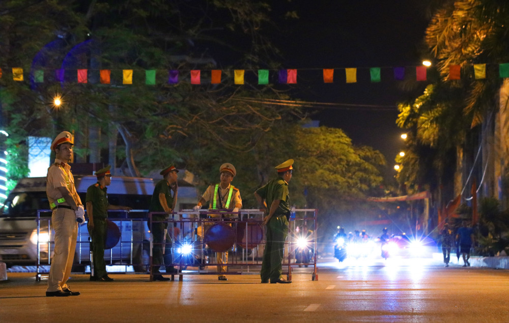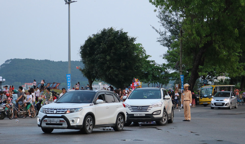 Lực lượng CSGT hướng dẫn các phương tiện lưu thông tại khu vực quảng trường biển