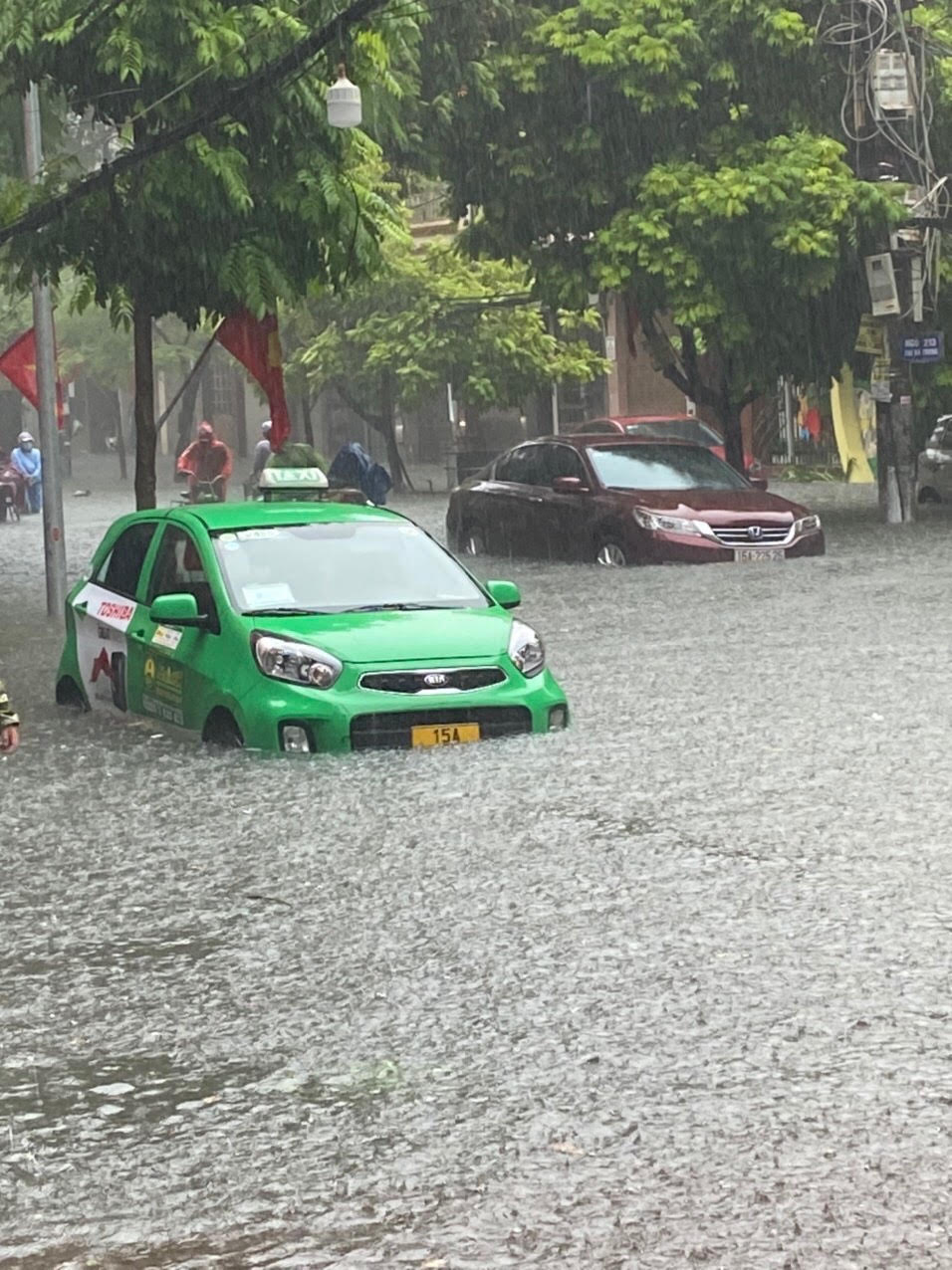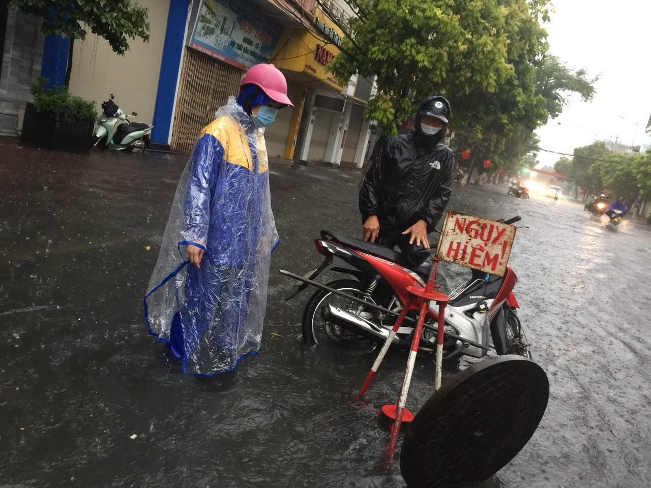 Riêng đường Đình Đông (từ nhà số 62 đến nhà số 102) ngập sâu gần 60cm. Nhiều gia đình sống tại các phố thường xuyên ngập lụt đã phải chuẩn bị các tấm ván gỗ để chắn nước.