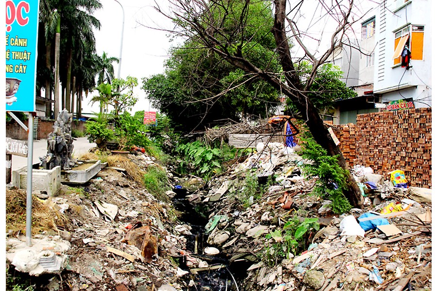 Từ nhiều năm nay, người dân khu vực cuối đường Vũ Chí Thắng, phường Niệm Nghĩa (quận Lê Chân) phải sống trong bầu không khí ô nhiễm do rác thải dưới kênh mương nước bốc lên.