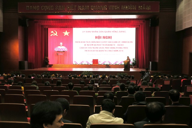 Sáng 11/1, quận Hồng Bàng tổ chức Hội nghị triển khai thực hiện Nghị quyết của Quận ủy, HĐND quận về nhiệm vụ phát triển kinh tế – xã hội; giao chỉ tiêu ngân sách, phát động phong trào thi đua và ra quân thu thuế năm 2019. Đồng chí Nguyễn Hữu Doãn – Ủy viên Ban Thường vụ Thành ủy, Trưởng Ban Tuyên giáo Thành ủy dự Hội nghị.