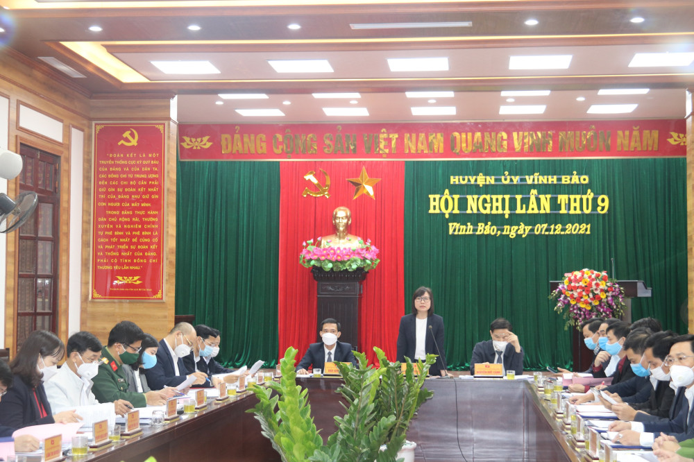 Sáng 7/12, Huyện ủy Vĩnh Bảo tổ chức Hội nghị lần thứ 9 đánh giá tình hình, kết quả thực hiện nhiệm vụ năm 2021 và xác định phương hướng, nhiệm vụ năm 2022; xem xét thông qua Nghị quyết của Ban Chấp hành Đảng bộ huyện khóa XXVI về nâng cao chất lượng giáo dục và đào tạo, góp phần phát triển nguồn nhân lực chất lượng giai đoạn 2021-2025, định hướng đến năm 2030.