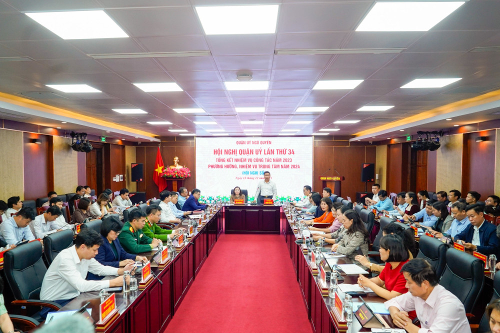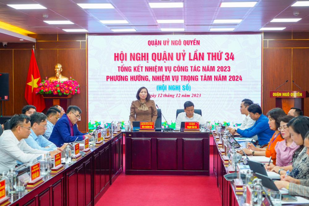 Chiều 12/12, Ban Thường vụ Quận ủy Ngô Quyền tổ chức Hội nghị Quận ủy lần thứ 34 mở rộng kiểm điểm kết quả thực hiện nhiệm vụ công tác năm 2023; bàn chủ đề, mục tiêu, chỉ tiêu, nhiệm vụ, giải pháp năm 2024. Đồng chí Đào Khánh Hà, Ủy viên Ban Thường vụ, Trưởng ban Ban Tuyên giáo Thành ủy dự Hội nghị.