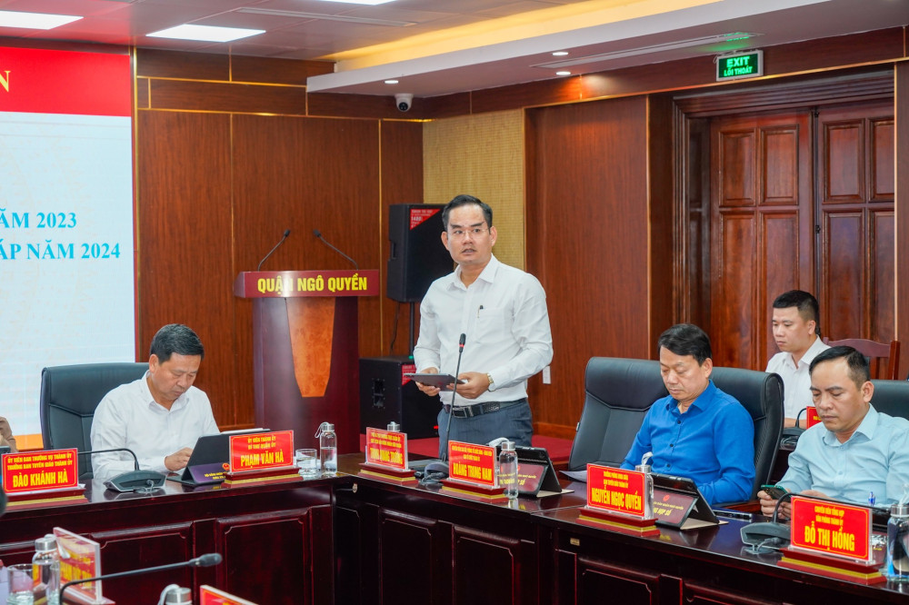 Phát biểu tại Hội nghị, đồng chí Đào Khánh Hà, Trưởng ban Ban Tuyên giáo Thành ủy ghi nhận nỗ lực, quyết tâm cao của Quận ủy Ngô Quyền trong lãnh đạo thực hiện các chỉ tiêu, nhiệm vụ kế hoạch năm 2023, nhất là công tác giải phóng mặt bằng các dự án. Bước sang năm 2024, đồng chí yêu cầu Quận ủy Ngô Quyền tiếp tục phát huy những kết quả đạt được, tập trung thực hiện tốt chủ đề năm của quận, triển khai tốt các Nghị quyết của Trung ương và Thành ủy. Quận tiếp tục tập trung giải phóng mặt bằng các dự án trọng điểm, tăng cường quản lý nhà nước về đất đai, trật tự xây dựng; phòng chống tham nhũng, tiêu cực, giải quyết đơn thư, bảo đảm an sinh xã hội.