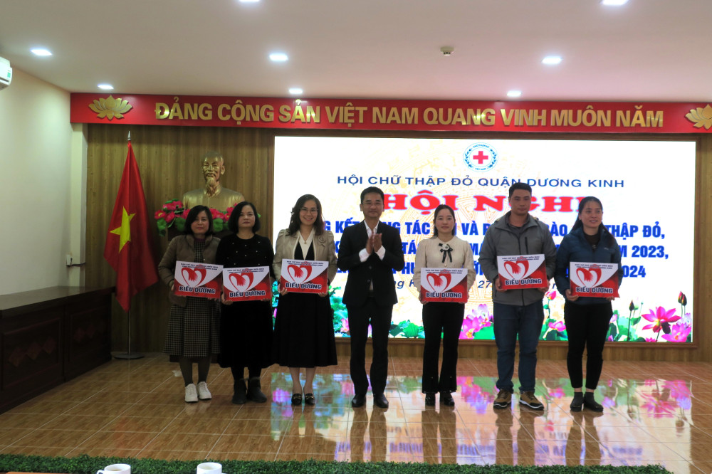 Ghi nhận những đóng góp tích cực trong thời gian qua, nhân dịp này, Trung ương Hội Chữ thập đỏ Việt Nam trao tặng Kỷ niệm chương Vì sự nghiệp Chữ thập đỏ cho 19 cá nhân của quận Dương Kinh; Hội Chữ thập đỏ thành phố tặng Giấy khen cho 9 tập thể, 16 cá nhân; UBND quận Dương Kinh tặng Giấy khen cho 3 tập thể và 1 cá nhân; Hội Chữ thập đỏ quận Dương Kinh tặng Giấy khen cho 5 tập thể, 11 cá nhân; Ban Chỉ đạo Vận động hiến máu tình nguyện quận tặng Giấy khen cho 14 tập thể và 16 cá nhân có thành tích xuất sắc trong công tác Hội và Phong trào Chữ thập đỏ năm 2023.