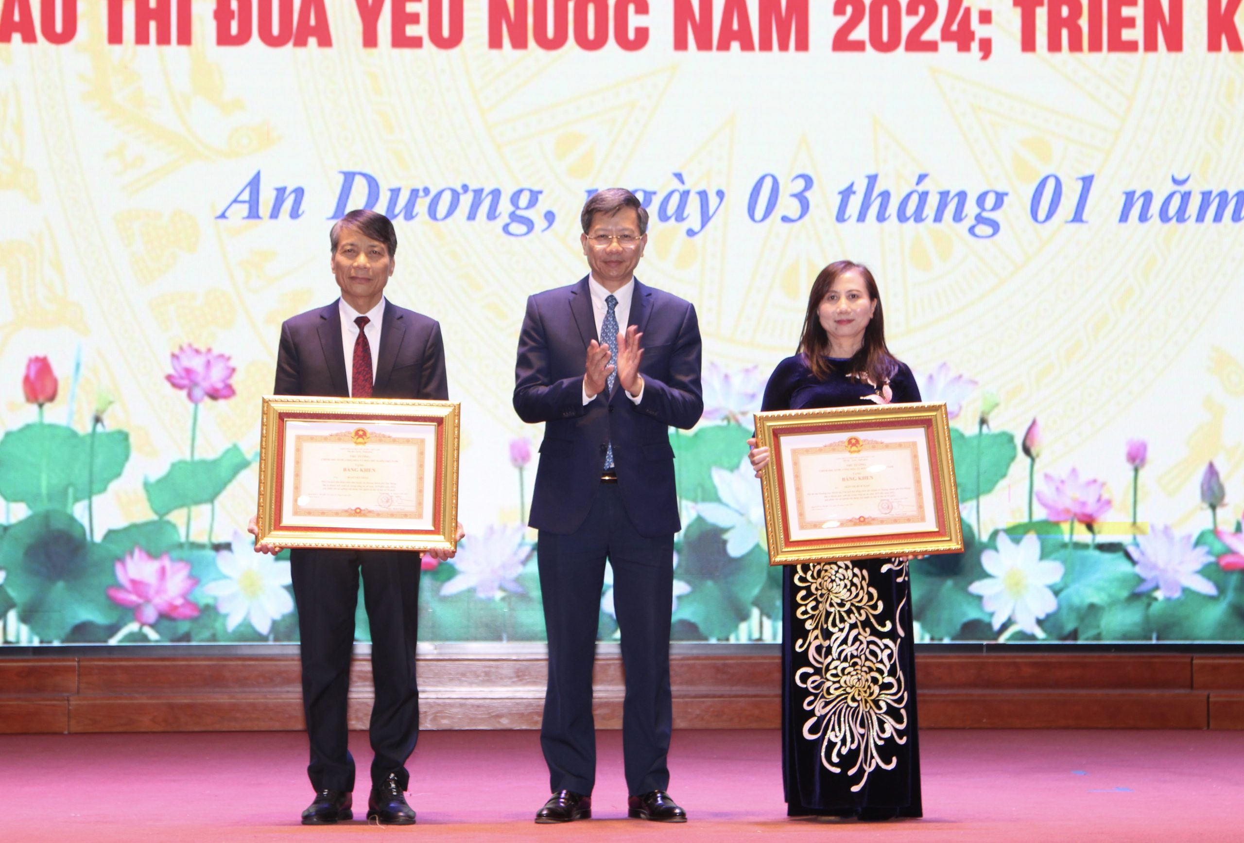 Nhân dịp này, Trường Mầm non An Dương vinh dự đón nhận Huân chương Lao động Hạng Nhất; Trường THCS An Dương đón nhận Huân chương Lao động Hạng Nhì. Các đồng chí Trần Thị Bích Ngọc, Phó Bí thư Thường trực Quận ủy, Chủ tịch HĐND quận; Hoài Viết Thảo, Phó Chủ tịch HĐND quận được nhận Bằng khen của Thủ tướng Chính phủ. 03 tập thể được nhận Cờ thi đua của UBND thành phố; 9 tập thể được nhận Danh hiệu tập thể Lao động xuất sắc; nhiều tập thể, cá nhân được nhận Bằng khen của Chủ tịch UBND thành phố. UBND quận biểu dương, khen thưởng 8 tập thể có thành tích xuất sắc trong thực hiện các phong trào thi đua./.