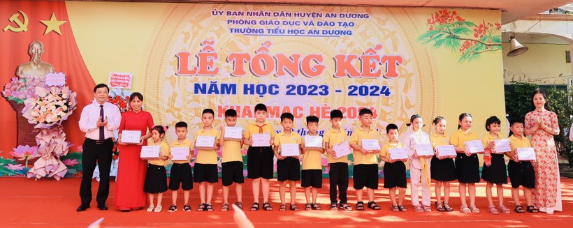 Tại Lễ tổng kết năm học và khai mạc hoạt động hè 2024 của Trường Tiểu học An Dương, huyện An Dương, học sinh nhà trường được thể hiện tài năng nghệ thuật với nhiều tiết mục đặc sắc. Đây là dịp để các em báo cáo thành tích trong phong trào “Thiếu nhi Việt Nam thi đua làm theo 5 điều Bác Hồ dạy” với những bó hoa Trạng Nguyên rực sắc dâng lên Lãnh tụ kính yêu.