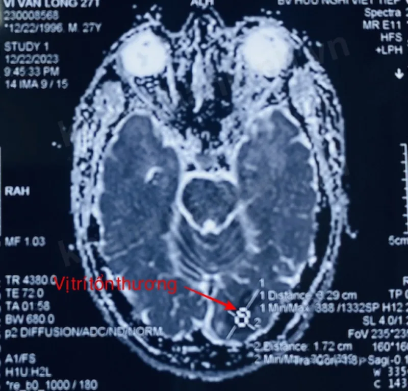 Người bệnh đã được nhập viện tại Bệnh viện Hữu nghị Việt Tiệp trong tình trạng thị lực mắt phải 8/10 (bán manh đồng danh), soi đáy mắt và mắt trái bình thường, kết quả chụp cộng hưởng từ sọ não cho thấy hình ảnh nhồi máu não mới thuỳ chẩm bên trái.