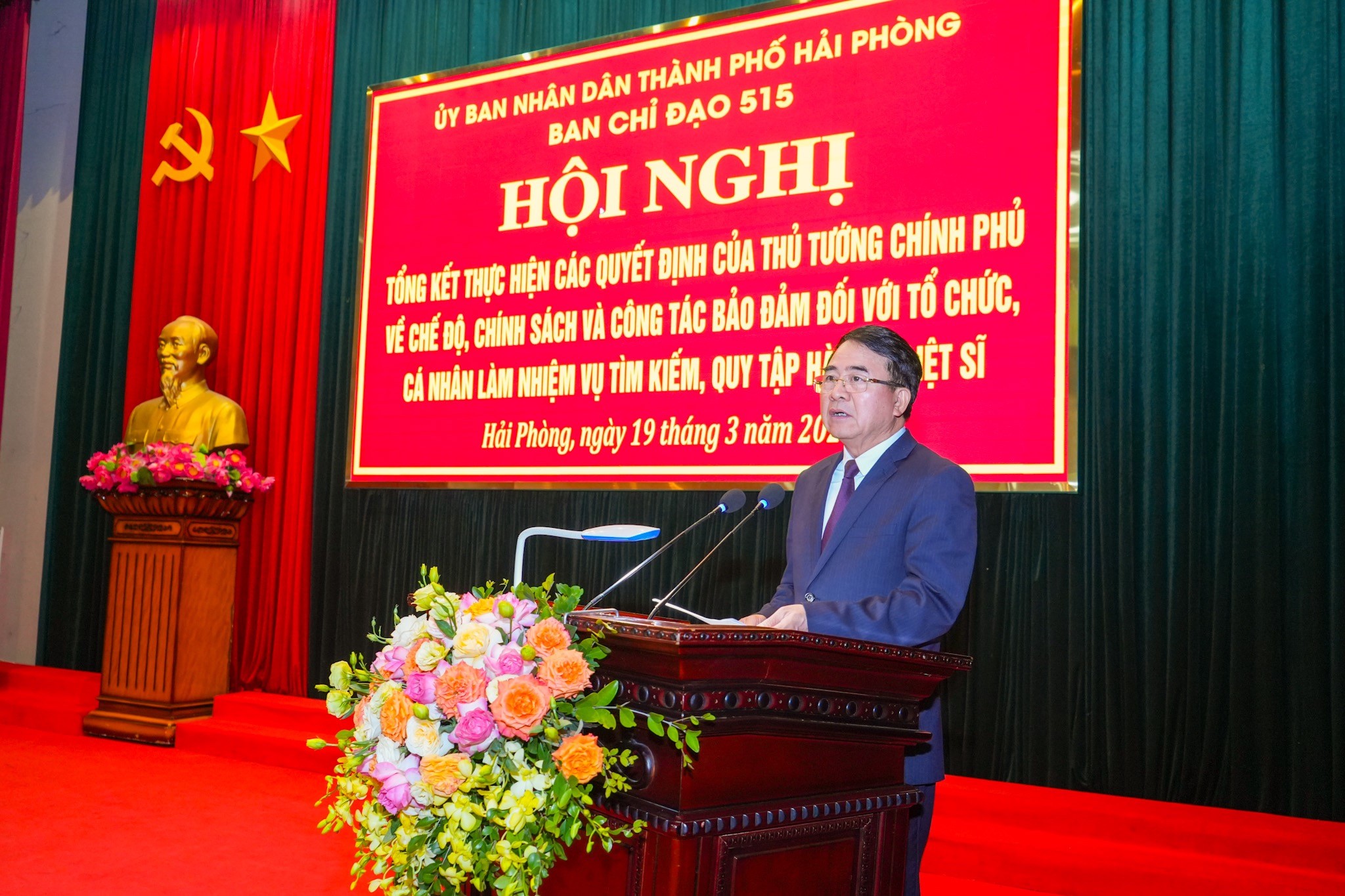 Phát biểu tại Hội nghị, Thiếu tướng Bùi Công Chức, Phó Chính ủy – Trưởng Ban Chỉ đạo 515 Quân khu 3 ghi nhận và biểu dương những kết quả mà Ban Chỉ đạo 515 thành phố đạt được trong quá trình thực hiện nhiệm vụ tìm kiếm, quy tập và xác định danh tính hài cốt liệt sĩ trong những năm qua. Đồng thời, đề nghị Hải Phòng tiếp tục nâng cao chất lượng tìm kiếm, quy tập và xác định danh tính hài cốt liệt sĩ trên địa bàn, bảo đảm thực hiện các chế độ, chính sách đối với các tập thể, cá nhân làm nhiệm vụ tìm kiếm, quy tập hài cốt liệt sĩ được thực hiện thường xuyên, công khai, đúng đối tượng, theo đúng quy định tại các Quyết định của Thủ tướng Chính phủ.