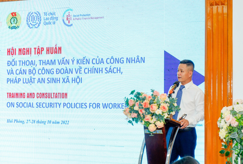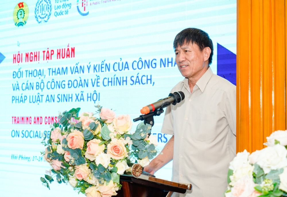 Sáng 27/10, tại khách sạn Công đoàn Hải Phòng, Tổng Liên đoàn Lao động Việt Nam phối hợp với Tổ chức Lao động Quốc tế (ILO) tổ chức khai mạc Hội nghị tập huấn đối thoại, tham vấn ý kiến của công nhân và cán bộ công đoàn về chính sách, pháp luật an sinh xã hội.