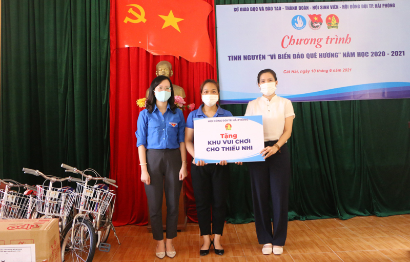 Hưởng ứng Tháng Hành động vì trẻ em, nhằm động viên, hỗ trợ cho các em học sinh có hoàn cảnh gia đình khó khăn vươn lên đạt thành tích cao trong học tập và rèn luyện có phương tiện để tiếp tục đến lớp, đến trường, Thành đoàn Hải Phòng, Sở Giáo dục và Đào tạo đã trao tặng 5 xe đạp cho học sinh có hoàn cảnh khó khăn.