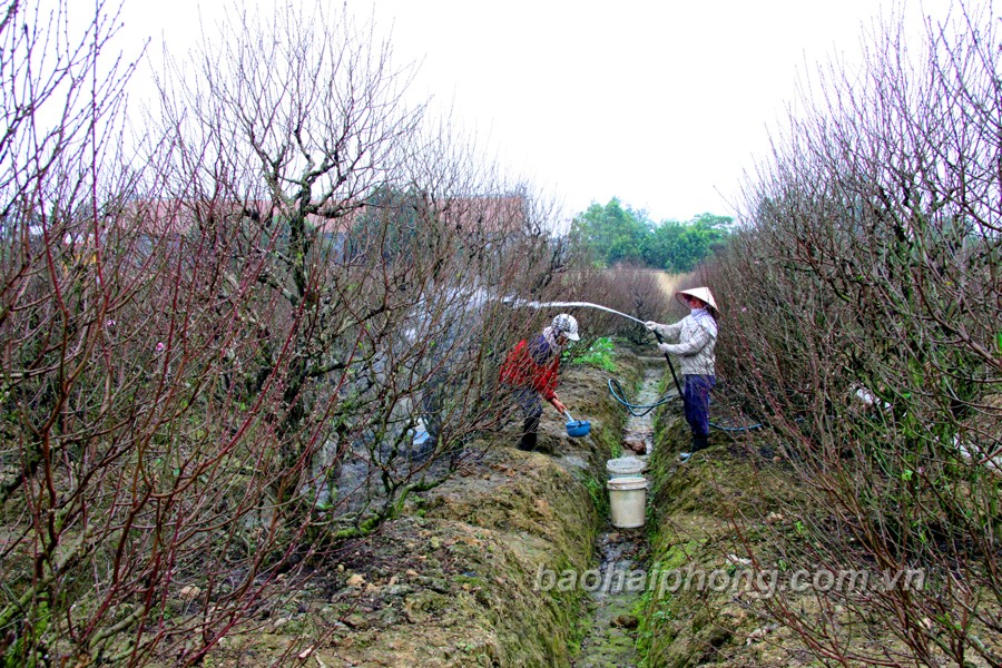Những ngày Tết Nguyên Đán cận kề, các làng hoa, nhà vườn cây cảnh tại huyện An Dương đang hối hả chăm sóc những gốc đào, cây quất, khóm hoa phục vụ người dân đón Tết.