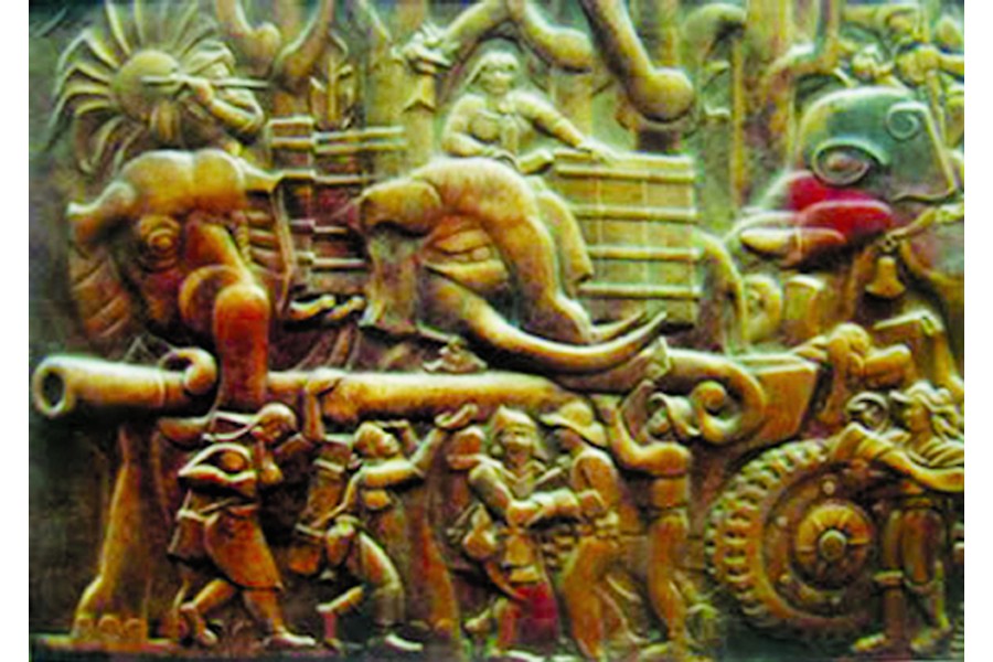 Tác phẩm “Voi Trường Sơn” tranh gò đồng của họa sĩ Phạm Ngọc Lâm.