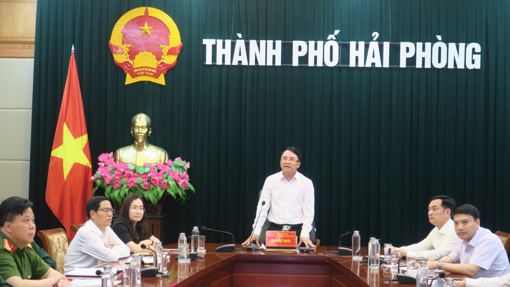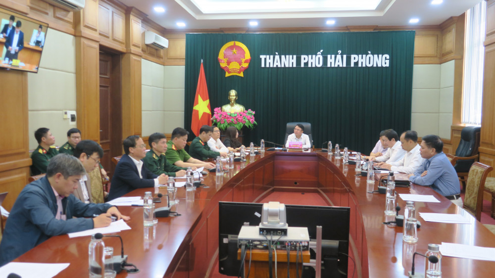Tại điểm cầu thành phố Hải Phòng, đồng chí Lê Khắc Nam, Phó Chủ tịch UBND thành phố và đại diện lãnh đạo các Sở, ngành, đơn vị liên quan tham dự Hội nghị.