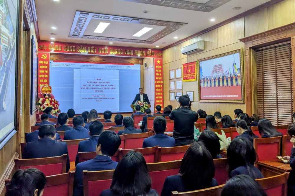 Cũng tại Hội nghị, đồng chí Phạm Xuân Thanh, Bí thư Đảng ủy Khối các cơ quan thành phố đã quán triệt Chuyên đề học tập làm theo lời dạy của Chủ tịch Hồ Chí Minh về “Khai thác, huy động, sử dụng hiệu quả các nguồn lực để xây dựng, phát triển và bảo vệ thành phố”.