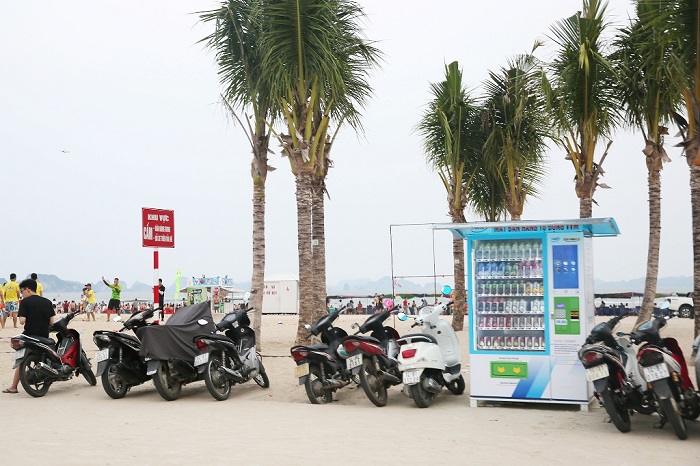 Dải cát ngay cạnh lề đường cũng trở thành nơi để xe máy tự phát, thậm chí ngay dưới biển báo “cấm đỗ” và bất chấp việc không ai trông coi.
