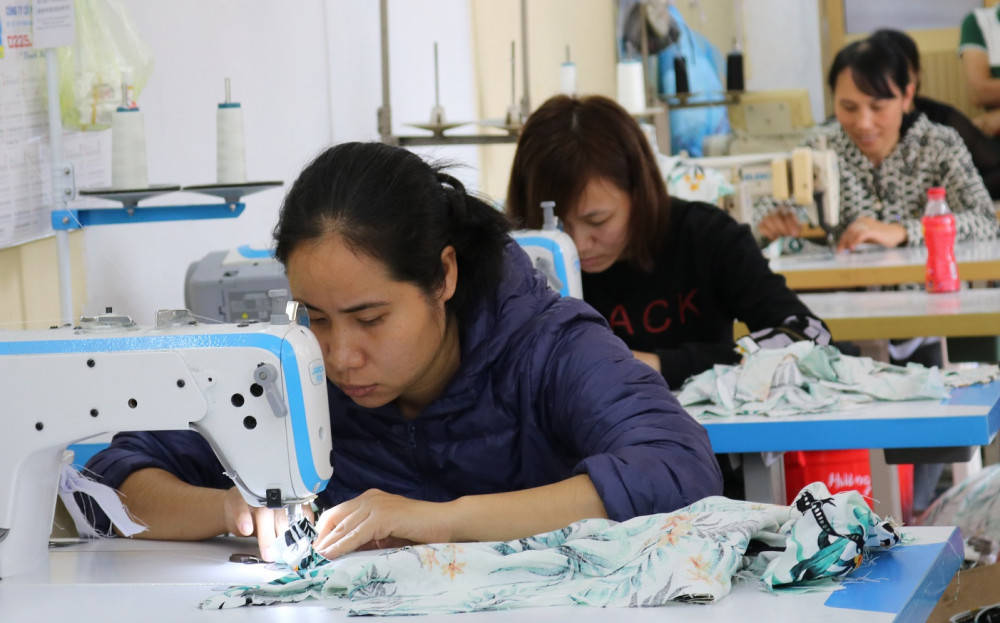 Công nhân may mặc gia công hàng xuất khẩu tại Kiến Thụy