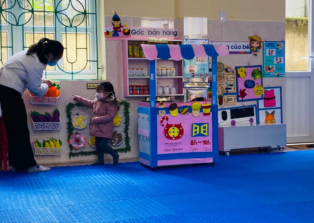 Nhưng đến cuối tuần, số trẻ đến trường đã giảm xuống chỉ còn 17 cháu. Số trẻ đến trường giảm dần một phần do thời tiết mưa, lạnh, phần còn lại do gia đình các cháu bị cách ly do có F0, F1 nguy cơ cao, nhiều cháu cũng thuộc diện cách ly do lây nhiễm dịch Covid-19 từ bố mẹ.