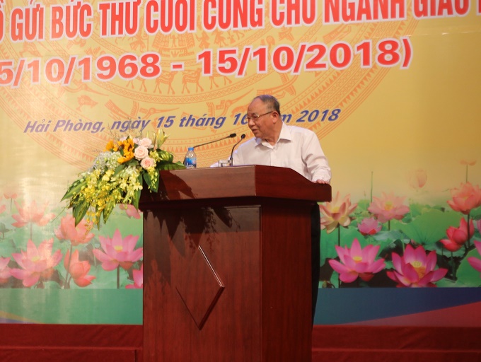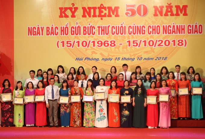 Sáng 15/10, Sở Giáo dục và Đào tạo, Hội Cựu giáo chức thành phố và Công đoàn ngành Giáo dục Hải Phòng tổ chức kỷ niệm 50 năm ngày Chủ tịch Hồ Chí Minh gửi bức thư cuối cùng cho ngành giáo dục; biểu dương các tập thể và cá nhân xuất sắc trong phong trào làm theo lời Bác và thực hiện Chỉ thị số 05-CT/TW của Bộ Chính trị về “Đẩy mạnh học tập và làm theo tư tưởng, đạo đức, phong cách Hồ Chí Minh”.