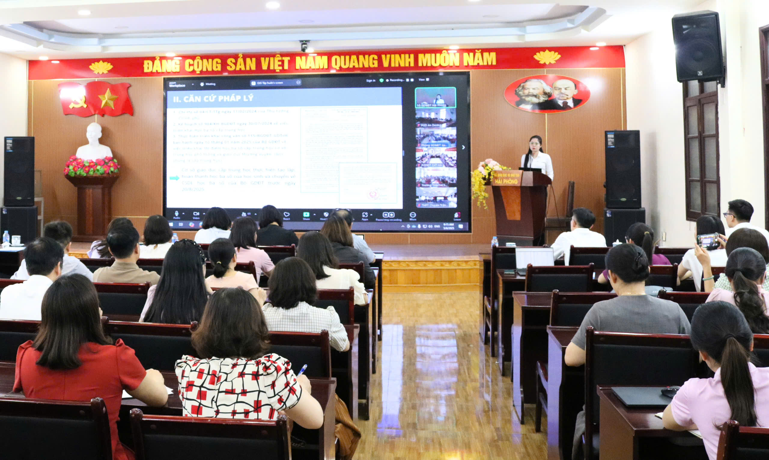 Sáng 6/5, Sở Giáo dục và Đào tạo thành phố tổ chức Hội nghị tập huấn triển khai học bạ số cấp Tiểu học trên diện rộng, đồng thời thí điểm áp dụng học bạ số đối với cấp THCS, THPT và Giáo dục thường xuyên trong năm học 2024-2025. Hội nghị được tổ chức theo hình thức trực tiếp tại điểm cầu trung tâm Sở Giáo dục và Đào tạo, kết nối trực tuyến tới 170 điểm cầu gồm các phòng Giáo dục và Đào tạo quận, huyện, thành phố Thủy Nguyên cùng các trường THPT và trường phổ thông nhiều cấp học trên địa bàn thành phố.