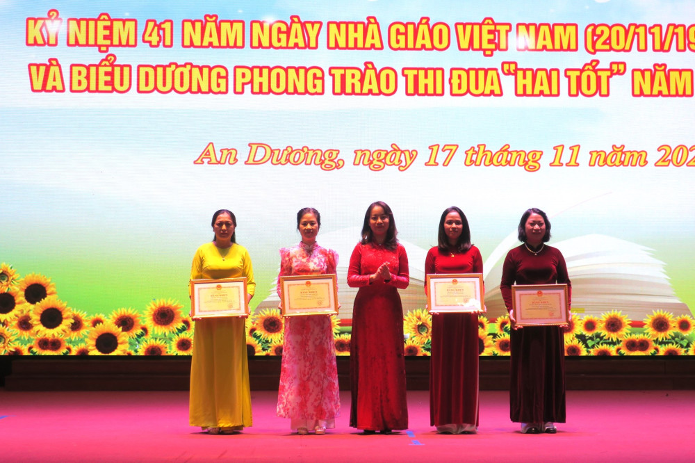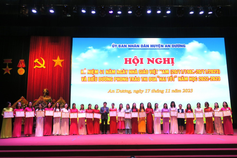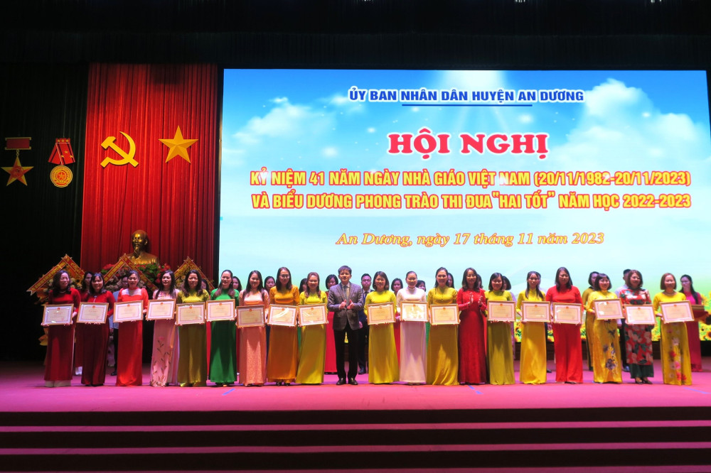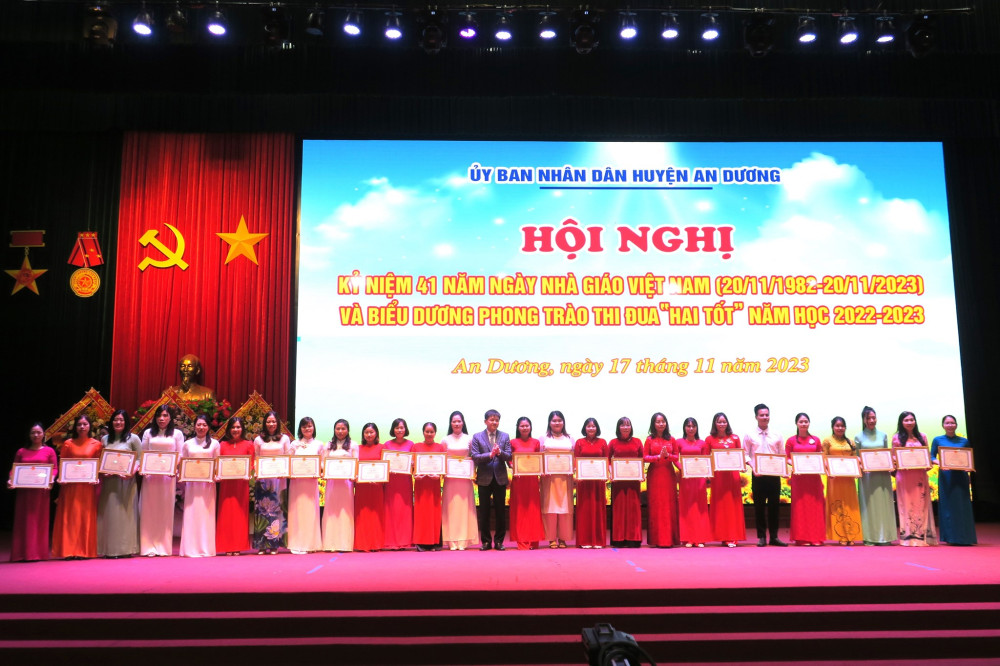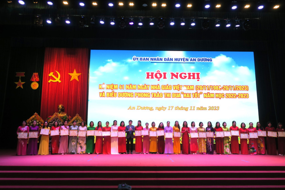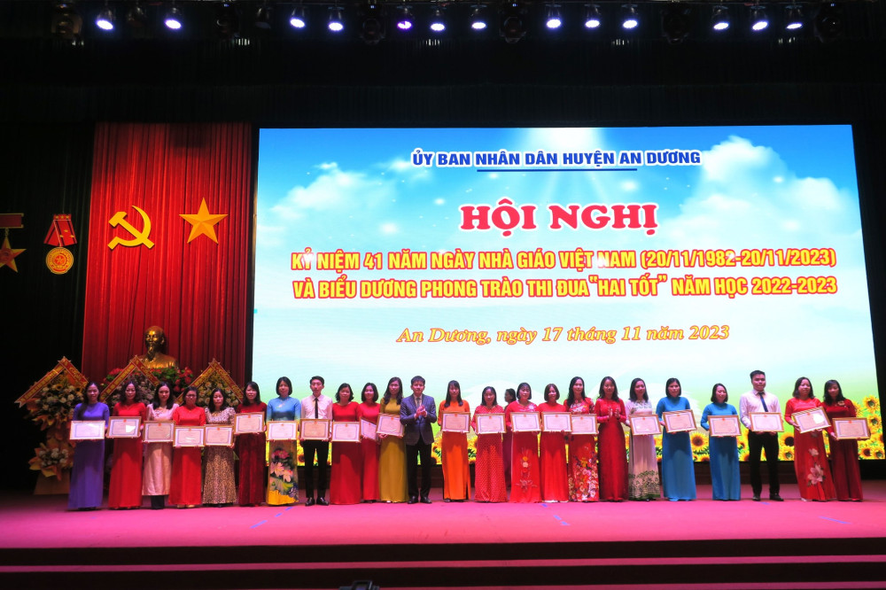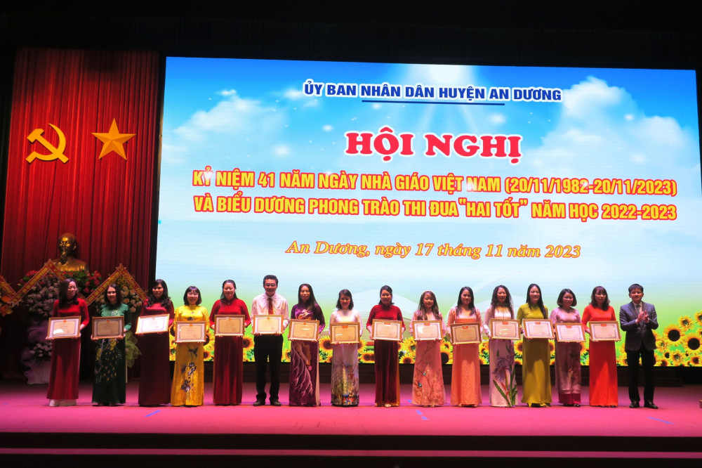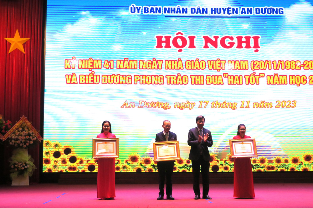 Cùng với các phong trào, nội dung thi đua do Đảng bộ và Chính quyền huyện An Dương phát động, triển khai; Phong trào thi đua “Hai tốt” trong cán bộ quản lý, nhà giáo, người lao động toàn ngành Giáo dục và Đào tạo được tổ chức triển khai nền nếp, hiệu quả. Ngành Giáo dục và Đào tạo huyện tạo chuyển biến căn bản, mạnh mẽ mọi mặt. Chất lượng giáo dục và đào tạo ngày càng phát triển toàn diện, công tác phát hiện, bồi dưỡng học sinh giỏi tiếp tục có nhiều đổi mới: đạt 44 giải học sinh giỏi tại các cuộc thi giao lưu quốc tế và khu vực; 02 Huy chương Vàng, 01 Huy chương Đồng tại Giải thể thao học sinh toàn quốc; 111 giải học sinh giỏi cấp quốc gia; 309 giải cấp thành phố và 1.874 giải học sinh giỏi cấp huyện. Huyện An Dương đứng tốp đầu khối huyện về điểm trung bình thi vào Lớp 10 THPT; 01 học sinh đạt giải Nhì môn Lịch sử tại Kỳ thi chọn học sinh giỏi quốc gia năm 2023, 16 học sinh đạt từ 27 điểm trở lên trong kỳ thi tốt nghiệp THPT năm 2023…; 75 giáo viên được công nhận danh hiệu giáo viên giỏi cấp thành phố, trong đó 06 giáo viên có thành tích xuất sắc được Giám đốc Sở Giáo dục và Đào tạo và Công đoàn ngành Giáo dục Hải Phòng tặng Giấy khen.